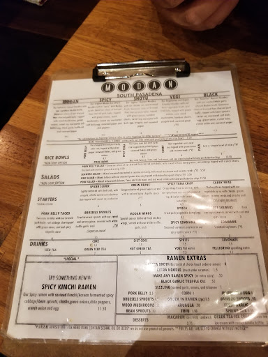 Its nice to know that theres an option for good ramen in the South Pasadena area. This place is located in the same plaza as Bristol Farms. Its small and cute with modern decor. The menu has some ramen options, appetizers, and rice bowls. I ordered the hot green tea, which they didnt refill. It was good tea and you can tell that they use actual matcha powder. So unfortunately, I thought the service was mediocre for a Wednesday night. It wasnt busy at all. As for the ramen, I ordered their traditional tonkotsu ramen. Its called "Modan Ramen" that included chashu pork, green onion, wood ear mushroom, nori (seaweed), half a soft-boiled egg and black garlic truffle oil. The broth was a little salty but I enjoyed the subtle hint of the truffle oil. I thought the noodles were just ok. The chashu pork was different. They are thicker slices but grilled. Overall, I think its a good place to get your ramen fix if youre in the area and dont want to drive to SGV, Little Tokyo or Sawtelle and bother with parking or long lines.