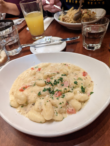 My friend and I had a very pleasant waitress and the cream sauce on the tagliatelle con pollo was delicious and not too thick or thin or heavy. The ciabatta was very yummy. Only downside was that the lighting that came on after sunset was very dim.