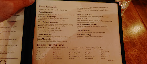 We dined at this restaurant on a Saturday night a couple of days ago. The restaurant is a little cozy, laid back restaurant to enjoy with the company of friends. Our waitress was friendly and attentive for a busy Saturday night. We had a bottle of the red Chianti wine, which paired wonderfully with all our meals. I had the scallop fettucine, which was delicious. Ending it with the tiramisu, which was one of the best desserts, Ive had in awhile. If your in a hurry, this isnt the place. Its a nice little restaurant to have wine, relax and sit for awhile and enjoy.