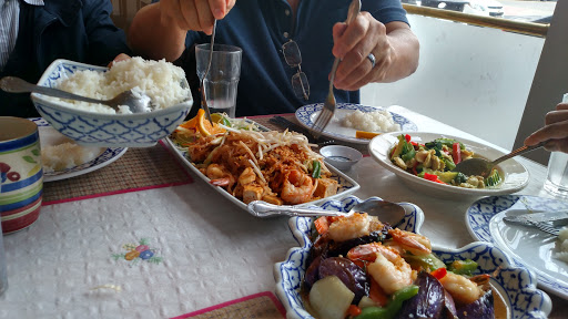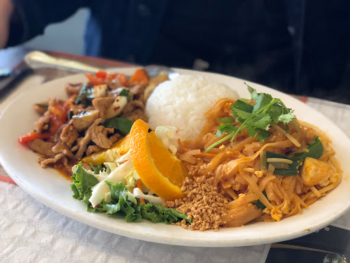 Stopped by here for a late dinner after picking up my mom from SFO. The food was pretty good, we got the shrimp pad Thai and garlic pepper prawns. I kind of wish the garlic prawns were spicier but they gave us some chili peppers that were perfect. The service was decent, I cant say it was great but Ive had worse. Overall, this was a good spot for Thai food. I would come here again if Im nearby but I wouldnt go out of my way for it.
