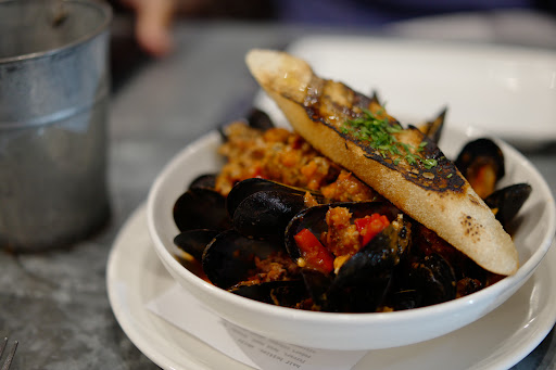 We split mussels, caesar and risotto. Had roasted salmon. Wife had wagyu bavette (flank steak) Amazing meal!