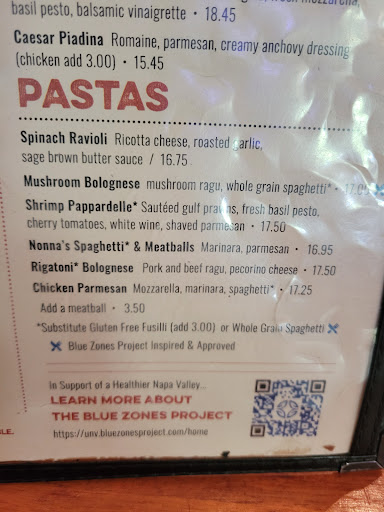 I cannot speak to a regular meal experience here, but if you are looking for a place in the area to do a group dinner, I would highly recommend Pizzeria Tra Vigne for the high quality of food, choices, service (both preparations & during the meal itself), & overall value. I wanted to write to commend Pizzeria Tra Vigne for the great experience my work team had when we ate dinner here as part of an offsite in wine country. Kimmie, who coordinated the logistics beforehand, was very communicative and responsive to any/all questions I had regarding a fixed menu for a group of 35. We paid about $30 / head inc tax & tip for soft drinks, caesar salad, assorted pizzas, & gelato...which I found very reasonable given that most places make you rent a room for a group of our size which jacks up your price quite a bit. They have a large selection of pizzas and gelato flavors if you choose to go this route. The staff was also accommodating to our one gluten free attendee. The place is pretty big & open (and seemed to be appropriately staffed) so luckily we did not feel like we were totally overwhelming the place. The parking lot is big, which also can be sometimes hard to find on this main street in St. Helena. Only thing that was slightly disappointing was that the corkage fee is not waived for groups ($10/bottle). All our guests were overall very pleased with the experience; thank you Kimmie & company.