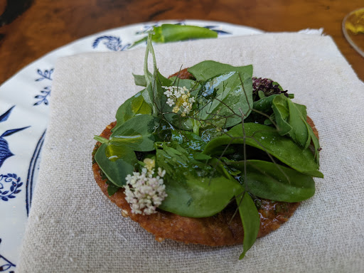 This was my first Michelin 3 star experience, and the dinner was really good overall. After a few amuse bouches, our meal started with surf clam (gwai fei pong at Chinese restaurants) with avocado and lardo. I loved the flavor combination as avocado and lardo added a nice richness to the clam. My only complaint about this dish is that the surf clam was minced up. I really think it wouldve been more interesting if the clam meat was cut into large, thin slices, because the surf clams natural firm texture wouldve created a nice contrast with the softer avocado and lardo. The little mini brioche that accompanied the clam was also pretty fantastic. It had a rich and buttery flavor, but it was still soft and fluffy. Mmmm so good. My favorite dish of the night was the abalone on smoked peppers and eggplant. The abalone was perfectly tender and not rubbery at all. There was no hint of fishiness, and its delicate sweetness was complimented by the fragrant smoke in the peppers, eggplant, and brothy sauce. I really enjoyed the execution of the dish as well. The crisp sides of the abalone with the soft eggplant and runny sauce created really deep layers of textures. I kinda wish the dinner was just multiple servings of this course. The poultry and vegetable broth was also surprisingly good. While some thought it was too salty, I liked its boldness, and it had a strong umami flavor. The vegetables gave it a balanced sweetness, but Im not sure if the bee resin did anything. Ive never had bee resin before, so I wasnt sure what to look for. What would really take this broth to the next level would be a little ginseng. Maybe its my Chinese taste buds, but I think just a hint of ginseng bitterness wouldve added some more complexity and balance to the broth. Regardless, it was still really tasty. I think the only other memorable dish was the brillat savarin cheese, which was the last of the savory courses. Its very rich, creamy, savory, slightly salty, but not very sour which I liked. I cant say I cared that much about the handmade rye bread (Tartines country loaf tastes better), but the cheese was delicious. The rest of the dinner was either weird or underwhelming. There was this strange cereal dish in the middle of the meal that felt out of place. It was various grains in Oaxacan corn flavored milk. Maybe Im just not sophisticated enough to appreciate its inclusion, but I didnt like it. The pork collar and squab courses also didnt feel very special. They were served with their typical complimentary fruits like figs and berries. I thought the seafood courses were way more delicious and creative. While not everything was perfect, there were some very memorable courses that made the experience worthwhile. Yay Meadowood.