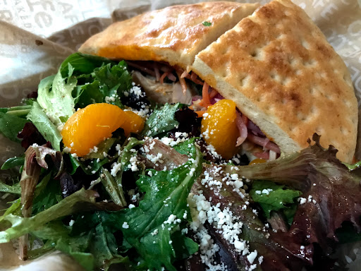 This place has the best sandwiches. My favorite is the Californian its got chicken and avocado and a spicy creamy sauce. I like it so much I havent been able to risk eating everything else in their menu. The salads are simple but delicious, as good as the sandwiches are I always finish the salad. There is sometimes a line but when you order theyll give you a pager and they are consistently fast in filling their orders.