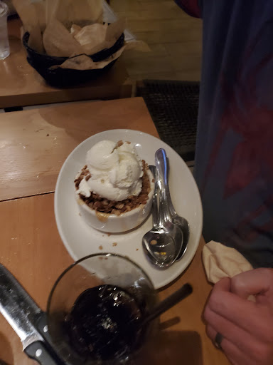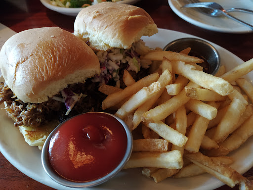 The food is pretty good. My wife said the veggie burger was good and I had the pulled pork and it was great. But my fries were not hot and tasted like they had been sitting awhile. Service is lacking, they do get very busy and just dont keep up. Our waitress took our order right away but then never returned till the she dropped off the check. Our food took a long time to come and was dropped off by a bus boy who did refill our drinks after we asked him to. Then we were abandoned for the rest of our meal. I saw the waitress going out to the patio to check on tables out there so maybe they have more business then they can handle. We had a 10 min wait to be seated and they have a cool app that lets you phone know when they are ready to seat you and you can see the menu on as you wait.