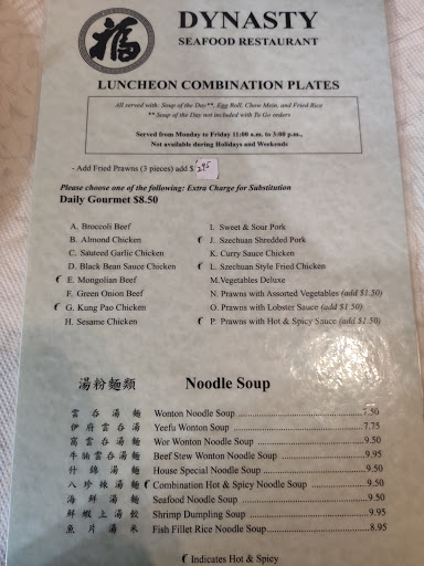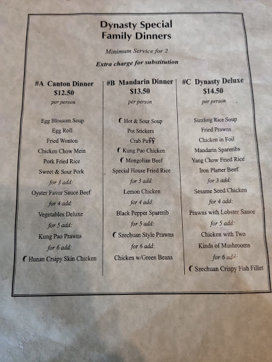 Their potstickers are addictive, the dipping sauce takes it to another level of YUM. We always enjoy the variety and freshness of Dynastys food. The owner and staff are helpful, friendly and recognize us when we visit. One of our familys favorites for Chinese food.