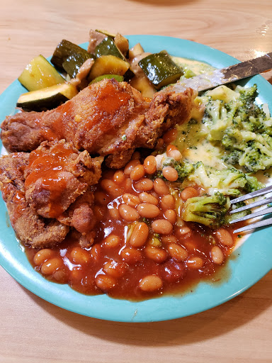 Good food, BIG selections. Almost every year I go to a transportation convention in Stockton and look forward to having dinner during our long dinner break on Saturday evening. Try to get their early as the place is loaded with families on the weekends. The number of choices for every part of your meal is unbelievable. I made three trips for salads and entrees, plus two trips for desert. (Yeah, but I only cheated on my diet for one night.) Most of the food was simple but good stuff. The meat loaf didnt have much flavor, but the rest did. Lots of veggies. You get your moneys worth. I found the staff friendly and working hard to keep restocking the food tables. When I left my seat to get more, the staff picked up the empty plate pretty promptly. The place was pretty full. If you want value this is your place, if you want "a dining experience" take your hot date and a couple of hundred dollar bills elsewhere.