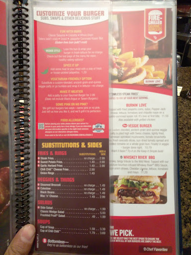 The service being good this time is the only reason it has two stars. The server was delightful. The food however was not. I ordered the jalapeño come and fried mushrooms. The jalapenos were excellent. The mushrooms were soggy and bland.. I had the freckled lemonade. I requested a refill 3 times and sat and waited. Didnt even get ice water in the meantime. I ordered a whiskey River burger. It showed up with no sauce and the onions were a white soggy mess underneath. Twice I asked for extra crispy fries and both times they were not crispy. The manager had the cold remake my burger correctly but the turkey Patty was undercooked. She offered to comp my appetizer for the trouble. But I still didnt get to eat most of my burger or fries. And sat for most of the time with no drink. I tried to give them the benefit of the doubt but this is the third time Ive had really bad food at this location.