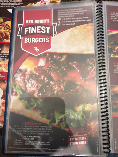 Was here last week. Red Robin has good food, but at this location, not sure what happend. You can tell who is experienced and who isnt. Bottomless fry basket comes out with 5 fries each. Dont understand. The artichoke dip tastes like thy buy it and warm it up. The quality of the burgers arent like others. Doesnt look like thy clean up the carpets after customers. Alot of people walking around instead of helping customers. First week opened, i hope thy fix it. I dont think i would return to this RR. Too bad.(thought id give it another try...1/12/17. Food quality is horrible. Burgers are thin and over cooked. Bottomless fries come out slow. Crossing this place out as a place to dine. Id rather stick to a fast food burger than this overpriced chain for a burger)