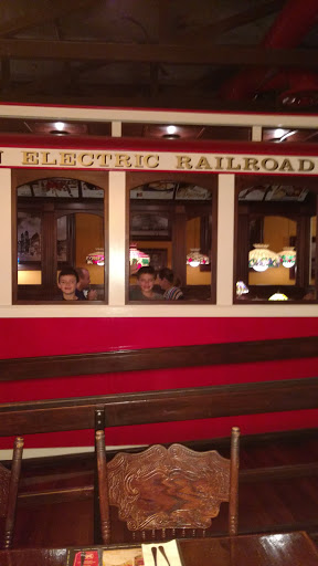 Food was good, staff seemed pre-occupied. Could have been from an extremely rude family party that allowed their small children to run all over the dining area, climbing on the rails of the railroad car. The grandpa followed them on their miscreant behaviors.