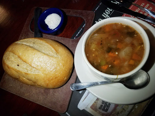Its a pretty standard routine, food is a good value over all. Bread, salad or soup, your meal and a small dessert, for one price. A good value, food is good. Service was good.