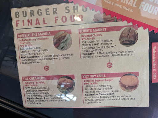 Victory Grill !!! Mighty tasty. Fast service. Portion size is great !!! The bacon infused cheeseburger & 1/2 order garlic fries is "off the hook" yummy !! & I promise you will be stuffed to the gills!!!