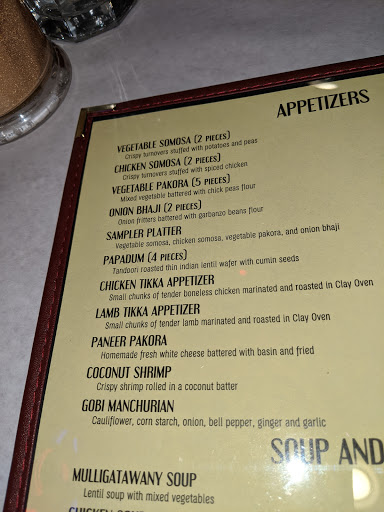 Small and nice Indian restaurant. We enjoyed Samosa and Malai Kofta. Serving sizes are decent. Menu choices are completely North Indian. Dont have a good appetizer list. Not to forget the service, very friendly and courteous. Overall I recommend the place. No parking lot structure, curb side paid parking is available. Carry quarters.