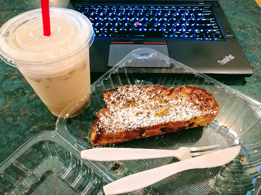 One of my favorite coffee shops in the area. I like to support small local businesses, and it helps when its a place with good food and good service. The staff here are always nice. Prices are reasonable for the area. Free WiFi. Good atmosphere for working or catching up with a friend. I usually get the hazelnut latte, and its always delicious. If you say its for here, theyll even make it in a real coffee mug for you, which is a nice touch. Ive tried a few food items from the menu, too, and those have also been delicious.