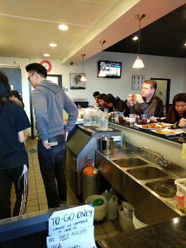 This is the WORST Bonchon Ive ever been to (others are: New York Korean Town, Philadelphia China Town, south San Jose), in terms of sanity, taste of food, and especially their BAD SERVICE! Its a small site, and we were seating next to the restroom. It was very hard trying not to notice the disgusting stains on the wall near us, and the smell. I dont know if they treat food the same way, but Im very worried if Im going to get a stomachache out of it. The chicken wings here are not as crispy as in other sites, also the spicy ones are not as spicy. Their SERVICE WAS SO BAD. We drove 25 min here, got 20 pieces of chicken and fried dumplings for just 2 of us (because I loved other Bonchons Ive been to). Then I got a bubble tea from next door and came back in. Right after I took the first sip, a waitress came and said they have a policy of NOT ALLOWING OUTSIDE BEVERAGES, with a tone sounding like I owe her 2 million dollars. She said there was a note on the door. However the only thing I noticed was a picture of Obama, showing how popular they are. I refused to let them take our drink, but agreed not to take any other sip. They emphasis thats their policy and wouldnt allow it! The manager came and said if I want to keep it to myself, I need to put it on the floor (which looks DISGUSTINGLY UNHYGIENIC!). Finally I let them took my bubble tea away. I wont come to this place again ever, and will tell all my friends to go to other sites if they want some Bonchon.