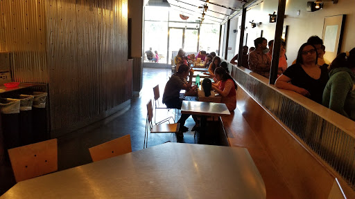 Typical Chipotle location with a clean interior and friendly staff. Expect a bit of a line during lunch but they move the line fairly quickly. Parking can be difficult as its in a shopping center next to a Trader Joes and other popular stores.
