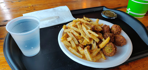 You order like youre at a Burger King and they give you a buzzer for when your food is ready. Food came out fast. Good selection of seating, with indoor tables and an outside patio with benches. FOOD WAS DOPE AF YO. You can tell the food is fresh when you get it and is made with the love. I dont normally have Mediterranean food but Im fasho becoming a regular here. The Rice and Freekah with Beef Schawarma was off the chain dawg. Comes with edamame and corn and other veggies on top of the rice and a side of fries or whichever side you want. Sauces were hella good too, I dug the Garlic Yogurt sauce (dont get thrown off by the name cuz its good with everything) the most but the other three were good too. Overall a fantastic lunch place.