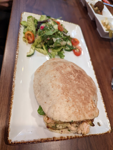 Quite possibly my favorite middle eastern restaurant Ive ever been too. Not that Im a middle eastern food-specific foodie, but I feel like I know enough of different types of foods / flavors from that region to know that what I ate here was freaking delicious. First thing you should know is that this place is popular. If you get here around 8PM, then be prepared to wait at least around 30-45 minutes (that was the wait-time for us, and we were just a group of 2). If waiting isnt up your alley, what you can try doing is snagging space at the bar. You can either sit there and grab a drink and wait for your table, or you can just sit there and eat your meal. Which is what we did. There is ample room at the bar to fit a couple of drinks, and a couple of entrees. And its still an intimate setting at the bar as its not THAT hectic back there. For drinks we ordered a bottle of white wine. They have a good wine list. For food we started off with the hummus and babaghanouge. The hummus was so creamy and the eggplant was roasted just to the right crispness, without being too oily. The pita that came with it was so tender. For entrees we got the mansaf and mashwi. The mansaf was incredibly rich, buttery and creamy. The lamb chunks within the mound of rice were so juicy and tender and just melted in your mouth. This dish could easily feed 2-3 people because of how rich it is. The mashwi was OK in my mind. I didnt think there was anything extraordinary about it. The prawns were cooked very well though (AKA not cooked to death / rubbery). The service from the bartender was great. He did a great job of balancing servicing our orders and tending our drinks. Overall, we definitely plan on making this a staple in our rotation of go-to restaurants.