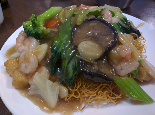Ive been going to King Wah regularly for years. This is one of treasures of Silicon Valley. The food is excellent, fresh, plentiful, and inexpensive. The decor is minimal, so if youre looking for atmosphere, you need to keep looking. They have a broad menu, but specialize in noodle dishes. The chow meins come in 2 varieties: soft noodle, and "hong kong style" which is a thin semi-crispy wheat noodle. They are flexible, modifying a recipe is no problem. Every dish comes to you looking like it ought to be on a magazine cover. Unfortunately the CFL lighting has a green-yellow cast and none of my android phone camera photographs look very good.