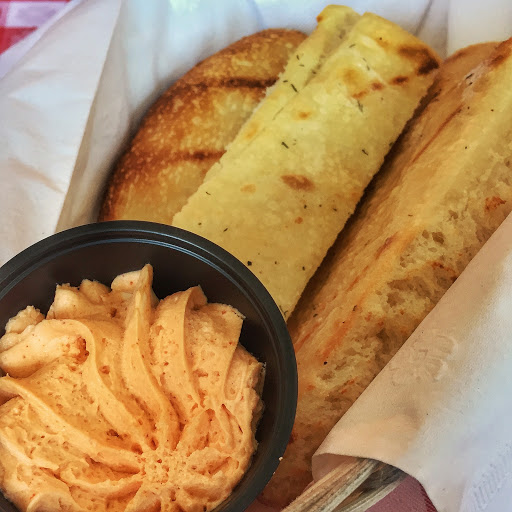 Bland, indifferent edibles... Garlic bread orange, for reasons I dont understand... No waiting, no waitstaff- cash register is the important thing after all