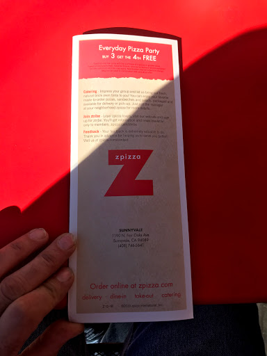 by far my favorite is z pizza, my second place is round table. Ive never found a place good enough to be considered third... I would rather eat some other kind of food (chinese, japanese, or even (gasp!) Indian cuisine before id order from those national chain pizza hell holes. I first discovered ZPizza when I moved down to Laguna Beach in the late 1980s and was delighted that it was better than Round Table because there was no Round Table in Laguna or the surrounding cities...Now ZPizza has followed me back up to NorCal and is in Sunnyvale next to the Fair Oaks Light Rail Station. I immediately came to check it out and as soon as I opened the front door of the store, I knew I had finally come home to my favorite place to eat in the world. The crust is so delicate and tasty you could eat it without any toppings, But dont, cuz its the freshness and variety of the toppings that makes it the best pizza ive ever eaten.