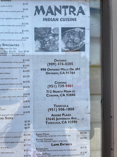 1 STAR. Horrible service! I have been a loyal customer to Mantra since 2012 when the food quality and service was at five stars. Sadly, the food quality and service has declined significantly. Today my family and I visited the brunch buffet and we were very dissatisfied. We patrons waited nearly 35 minutes for basmati rice to be served. We had to seat ourselves as no host was available to seat us. The waiter attended to us nearly 10 minutes later and served us warmer water mind you it was 100 degrees outside. By the time the rice was brought out, our family had finished our luke warm meals. The chicken tikka masala flavor and quality is not the same as it was over a year ago. The service continues to decline. I recommend traveling to the city of Riverside for high quality, authentic and excellent customer service. Hope this helps!