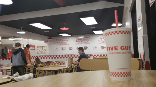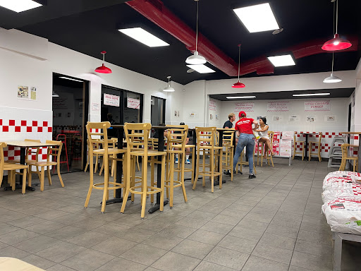 You Californians must really enjoy the crack In & Out must cook into their gross food, because Five Guys was a thousand times better. Being a future resident to this area, I had a business trip to take a quick view of LA and to do a little free roaming. I had already tried 5 Guys before in Eugene, OR and really liked it. I had not had In & Out before. My first visit was to the In & Out near T.O., and let me tell you, after eating it, I have NO idea why people were literally lined up out the door for that crap. The burger was flat and greasy, the fries were bland and boring, the milkshake about on par with a gross McDonalds shake. Went to 5 guys the next day, and this restaurant was as good as the one I had in Eugene. Fresh bun, not overly greasy burger, fresh crisp condiments (you can actually get condiments here instead of just "animal style"), and perfectly seasoned fries. I know what burger joint Ill be headed to when I make the move.