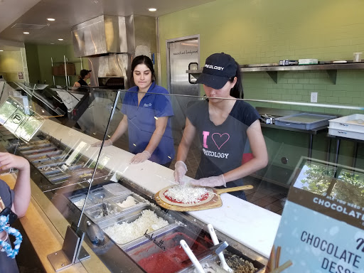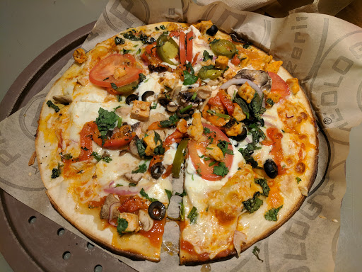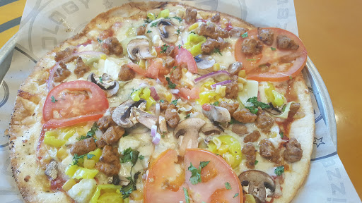 Pieology make single serving (10"-12") thin crust pizzas with a "Chipotle Style" ordering. You can choose plain, wheat or gluten free crust and then any sauces, cheeses and toppings you want. All the ingredients are very fresh and you can choose as many toppings as many you like for the same price. And theyre fired in a large pizza oven and brought to your table or you can get it to go.
