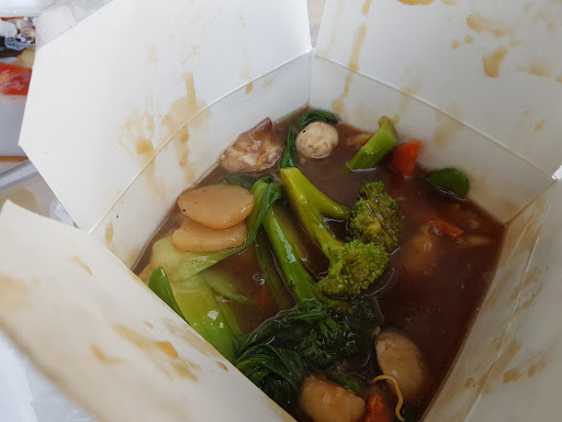 OMG! Since when are veggies in Beef Chop Suey mushy? I came in for dinner, was seated and then sat there and waited. Two more tables were seated after I was, the waiter took the first table, then proceeded to the second table and was taking their order. O.k., I wasnt going to let this ruin my night. After waiting again while the waiter went into the kitchen, I kind of started to get upset. So I went up to the counter and ordered to go. I should have known better. I ordered 2 meals to go. The Beef Chop Suey had mushy vegetables.Cmon, no bean sprouts, nothing crunchy, mostly yucky mushy broccoli and bok choy. My dog ate it. He seemed to enjoy it. The beef and broccoli, which I only tried the broccoli, and it was way over cooked and mushy. Dont you like crisp broccoli? I dont know what was up with this place tonight. The fried rice was greasy and stuck together. Again, my dog seemed to enjoy it. The fried shrimp was good as were the egg rolls. But the entrees sucked. The food used to be good here, veggies always crisp! Maybe they got a new cook or something. Totally bad experience. Who wants to spend $30.00 and it turns out to become an enjoyable meal for your dog? I swear he wolfed down those mushy veggies, greasy fried rice, and beef. He has a cast iron stomach. The portions are large, but who wants large portions of bad food? Not me!