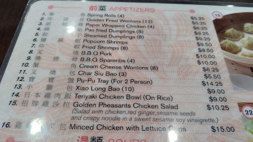 Been going here for over 10 years. However, over the past year the quality of the food has gone down. I hadnt been here in months I was pressed from time and placed a phone order. When I got there the lady proceeded to tell me they messed up and gave me the dinner instead of the lunch. She then told me its only .45 cents more. However, the lunch special was $6.50 and due to error on their part I was charged for the dinner which was $9.95. How is that .45 cents more. And since its your error shouldnt you have given me the dinner and changed me for the lunch? I ordered the lunch special for a reason. That will be the last time I go to the Golden Pheasant. Its not so golden anymore...