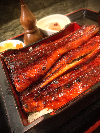 First, lipstick on my water. Second, the prices on the menu: soba and tempura (the size of my pinky) $13, Unagi box with a very little miso soup $20. Third, the california roll didnt arrive until we finished our food and the avocado was bruised.