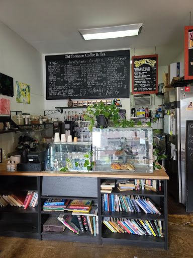 Great Comfy Furniture! Great Windows! Great High Ceiling and cool "coffee" table books. Oh, yeah... good coffee too. Cramped, lovely and homey...good food and cool sounds -- I hear there is an open mic on Weds. and JAZZ on TGIFs. Whenever I find myself in Old Torrance, I find myself in Old Torrance Coffee and Tea.