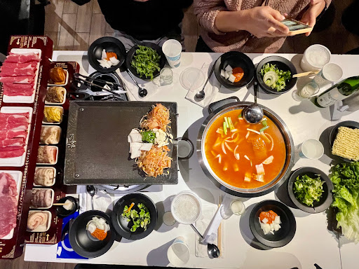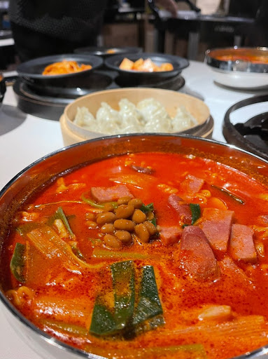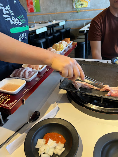 The pork belly was not well marinated so was really bland. Could just be the day and that batch, as you had a hint of how nice each of them could be with more time. It was well cooked though, and the service staff were nice and attentive. As someone who isnt keen on spice, the soup (seafood soybean?) was a bit too spicy and would have liked a non-spicy option; that being said, it had a very good flavor. When you finish the soup they cook fried rice in the pan (a neat idea). I did not like the flavor of the fried rice; it clashed with the soup base and tasted a bit off for me. This is definitely one of those places more enjoyable with someone, and its cheaper to order a combo rather than individual servings.