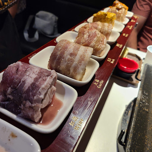 They call this Palsaik Korean BBQ for 8 kind tastes of pork. Because you can get the 8 different flavors of pork belly with combos. It is really good for famaily. I think the ambiance especially dinner time was not loud that much. I listened Korean BBQ restaurant with Korean music while I was eating but the volume is good to talk to my family. All staff were awesome they always asked me what I need. I felt they were watching counters all the time. They have stake menu too. I ordered it before start to eat the Palsaik Pork. They put onion with little pepper and salt. It was really awesome. I think you should have it. Oh if you bring your bag or some stuff, you can use the chair. You can open the seat, and then you can put your stuff in there. I think it is a good idea. I visited there with my family Friday night. I had to put my name on the name list for 30min. So if you have a plan to go there you better make a reservation.