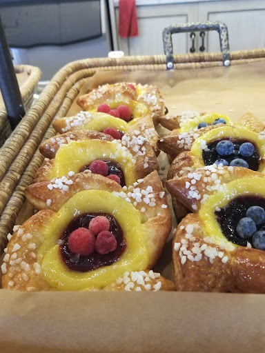 Pain au chocolat, croissant, pain au raisin, baguette...! Tout est formidablement délicieux Enfin du vrai pain comme en France Merci David et Caroline...!