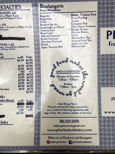 The Pinwheel Café is a welcomed addition to the Rolling Hills village. Their fig and honey as well as their raisin and nut scones are a treat not found locally. We also tried their butter croissants which fluff-up perfectly allowing one to fill the cavity with marmalade or jam of your choice. For sake of comparison, the pastries here are much better than at Starbucks. I cant speak to their coffee (on the coffee wagon) but their hot chocolate is very good, especially their lavender flavored serving. The Pinwheel also serves breakfast, which falls short to the quality of pastries, but good enough for an occasional order. The Pinwheel is open early, which is great for early morning walkers and those getting some special pastries for the office. Im not a big fan of background music, which, to me, is a little too loud for my liking. I prefer sitting outside rather than inside under one of the air conditioning vents. The Pinwheel has a charm that is finding its stride. It has not been open for very long. It is an excellent place to spend time with friends. Im looking forward to future visits.