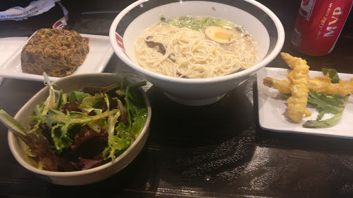 I didnt know about this place until I was walking by and saw pictures of ramen on the window. Finally had a chance to check this place out on Thanksgiving Eve. My dinner companion and I were quickly seated around 7:30pm. Menu isnt overwhelming, options of sushi and various ramen broth with light appetizers. I opted for the tonkotsu miso while my dinner companion went with the black garlic tonkotsu. My tonkotsu miso was pretty standard to most other places. There were definitely lots of flavor, not overly salty with tender pork. The ramen noodles itself were extra fine in texture, yet not soggy. Nothing too out of the ordinary. I had few bites of the black garlic tonkotsu and in the future, Id get this instead. The flavor was stronger, in a nice mix sort of way of light garlic, soysauce(?), with a hint of sweet?. Its unique and I havent tasted anything like this elsewhere. Ingredients inside was standard to everything else in terms of quality and quantity. 2 eggs per bowl and theyre brought on the side, you peel them and add to your ramen. My only dislike would be the "extras" you can include for additional charge. My dinner companion added corn (extra $1) that came on the side as well. There were maybe 20 kernels of corn total. After we both put 1/2 in each, we had to go digging for the corn. Not worth the extra $. Service was good, atmosphere was nice, restroom was clean, Ill probably be back.