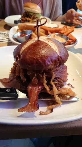 Its a fun place to take people who never ordered via iPad :) the iPad was a little confusing at first but then you get the hang of it after few minutes. I had the pulled pork burger and the sweet potato fries :) Do not get their teriyaki sauce. It tastes like soy sauce. Service was good. People stopped by to make sure youre doing ok. I love how you can leave the restaurant when theres a wait. They text you when the seat is ready. No need to sit around for 15-20minutes for a table.