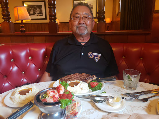 Good prime rib here. Be ready for a blast to the past as this place looks like something out of the sixties. You enter from the rear parking lot and immediately are greeted by the hostess near the bar. Watch out for traffic in and out of the kitchen and take off your sunglasses as its nice and dark in here, that is unless you are super cool. I have been here several times and each time there seems to be a senior gathering at the bar. Only thing missing is the cloud of smoke, but dont fear, there is an out door smoking area near the entrance. The place is larger than one might think upon entering, as there are two other large rooms. Always room for you. We always go for the prime rib. No veggies with your prime rib, just potatoes or rice. You do get a salad however. And the bread is to die for, has to be baked in-house. I could fill up on just the bread. I usually get the house cut of prime rib. It is a plenty big chunk of prime rib, no need to get the super large cut. For the price, it will be hard to find a better deal. Service is pretty good, but dont mess with the veteran waitresses, they have been around since this place went up. I really like this place.