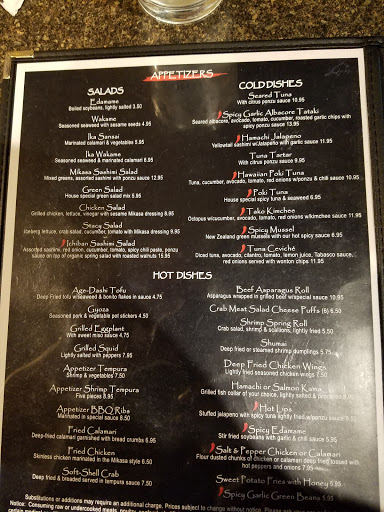 Since Mikasa opened, they continue to get better and better. Every time Ive been there (approximately 15 times) the staff have been very friendly and attentive. I usually stick to rolls or sashimi, which is always good. My favorite is the Jerrys Roll. Its a meal all by itself; with cilantro, garlic chips, different types of sashimi, tobiko, tempura shrimp, crab salad and a great sauce. I know Ive forgotten some ingredients. I will continue to visit Mikasa, you cannot go wrong.