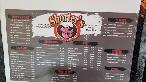Went and asked about there catering menu I had to wait 8 mins for someone to help me. There was a cubby man talking to people from the bowling alley ( inside where shorters is) there was a young man cooking inside of the kitchen and a young lady Inside the kitchen as well. Finally when the chubby man came over I asked him if he can set a price for a plate with a piece of chicken and a 1 rib and 1 piece of tri-tip. I said I just want to taste to make sure i like it before I order. I told him set a price I will pay. He told me that he couldnt do that he said that I had to order the 3 meat plate with all the sides??? I said I dont want sides dont need sides. He said that is the only way I was going to taste it. So I order the dam 3 piece meal and thank God I did need to it was so so. The only thing I liked was the tri tip. Which I thought I would order and then go somewhere else for thr trst of the meats. I waited 5 mins after I tried the meat he never came back to see if I liked it. As I looked around I noticed that the young guy inside the kitchen was sweating real bad he kept wiping his head( while cooking) sick!!! Then the chubby guy who was sweating to walked right by me. I thought what bad service!!!! Thanks to Donnie s I have the best BBQ and she didnt charge me to taste the meat!! Shorters you just list 745.00 sale. Duh....