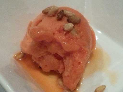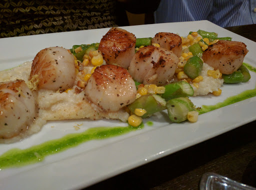 Find sustainability sexy? Bluewater Grill may be right up your alley! I had a nice evening dinner with a bunch of colleagues, and was impressed with Bluewater Grill. Located at the Tustin Legacy, near AMC, I was looking forward to dining on fresh seafood. Grilled Catalina swordfish- Harpooned right off shore and not netted, the swordfish was cooked to absolute perfection. Tender, flaky, easily cut with a fork. My tastebuds savored all the beneficial fat with each bite. The asparagus & carrots paired well with the fatty fish, and the potato strings gave a nice crunchy texture. Seared yellowfin tuna- Another wonderful dish, the tuna steak was presented on top of spaghetti squash & chanterelle mushrooms. The tuna was more dense than the swordfish, but delicious nevertheless. Blood orange sorbet- What a great palate cleanser! The brightness from the sorbet gave a nice pucker with each spoonful Roasted pineapple cake w/ vanilla ice cream & dehydrated pineapple slice- Sinfully sweet, the pineapple cake was moist and pineapple permeated the senses. The vanilla ice cream was smooth & creamy Service was great. The attendants made sure we were all taken care of. Never was my soda water w/lime empty for more than a few minutes. Plenty of seating by way of booths & tables. Our party was sat in a more private area, where we enjoyed each others company while dining on flavorful food. Parking is available as valet or self park at the Tustin Legacy by AMC. Bluewater Grill is a great restaurant to feast on sustainably caught seafood, most of which wild caught. A great date spot or just as a Happy Hour location, I highly recommend Bluewater Grill for incredibly cooked fish and/or seafood.