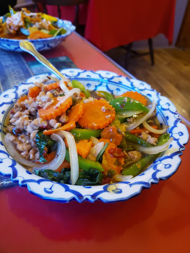Enjoyable Thai. The Honey Roasted Duck was too small yet it and the veggies were prepared very well. Loved the spring rolls which were very crisp and light. As always, any pineapple rice will be enjoyable, was very happy there were some jumbo shrimp included. Its been a few years since Ive been here, happy to see they continue to cook enjoyable food.