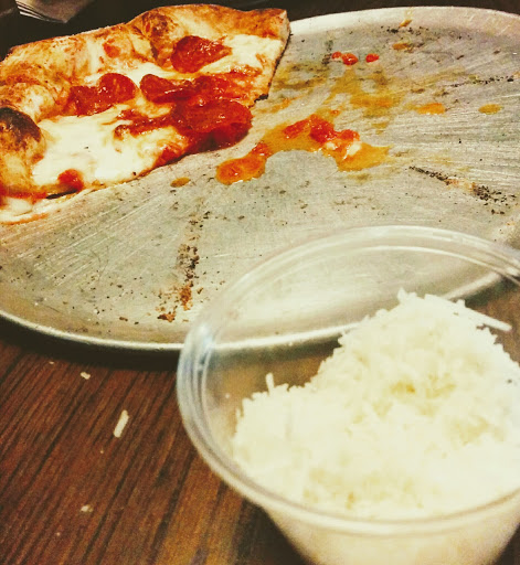 The pizza and salads were delicious. The service was speedy and the food came out fresh and warm. The atmosphere was pretty relaxed and quiet. I enjoyed sitting on the second floor. The only complaint is that the bathrooms could have been a bit more well maintained.