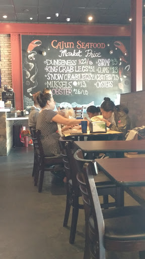 This place feels like it as a high prestige given that is it seafood based. We went there given the fact that weve always walked by it and said we would try it. There wasnt a line that a Boiling Crab usually has. The menus is very similar to that of a Boiling Crab. I find it interestingly strange how seafood places like this have an asian orient based feel to it. The food is okay, as my rice bowl contained more than 60% rice as opposed to the seafood that I paid for. The service was fairly decent, although the server repeated his name on 3 different occasions, set aside that it was written on the table cloth. Had asked for a copy of my receipt, waited 10 mins before leaving without it. Probably wouldnt go back to this place.