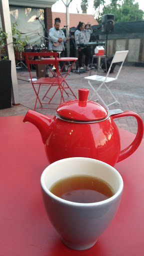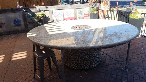 Pleasant patio, love the big round fire pit table! Kombucha tea was tasty, cant wait to try the coffee!