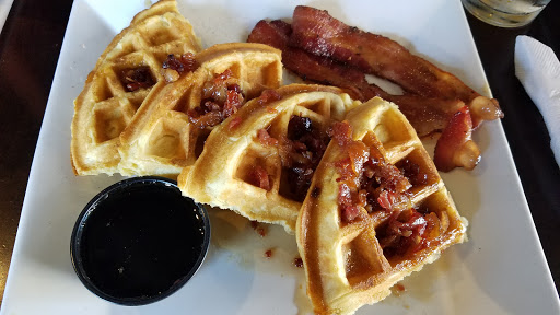 First timer at The Brass Tap. Me and my brother took our father here for a Fathers day brunch. We went right at 10AM when they opened so we got a table right away but it got busy fast. Service was quick. They have wide selection of beers and they also had mimosas for brunch. I ordered the Guinness bacon waffles and my brother and father ordered the chicken and waffles which was a Fathers day special. The brunch menu was slightly limited but everything was good. Id love to come back for lunch to try more food and beer.