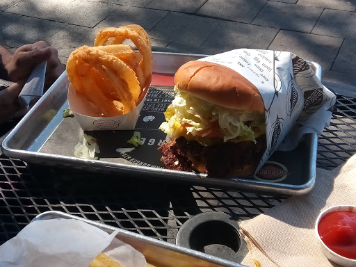 First time here, very impressed. Burger was very good, made to order. Fries were very good and fairly crispy. Downside is they only have burgers, chicken burgers and some veggie burger. I like much better than In-N-Out, but also a little more expensive. Will come back!