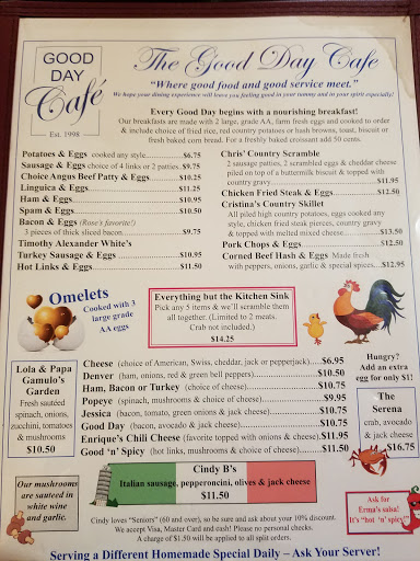This place is years over due for my review. When I celebrate I come here. When I am having a meeting I come here. When I am sad and need a smile I come here. I am from Oakland and is very picky what I put in my mouth. Good Day Cafe is one of the only cafe in Vallejo that I recommend to all of my family from out of state. Good Day Cafe name fit your mood when you leave here this will be a start of a Good Day.