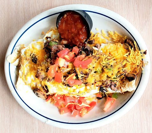 Omelette looked throughed together. Fruit bowl not fresh looked like it just came out of the fridge... frozen like. Wont be going back for breakfast anymore. Dennys breakfast much better. Fruit always fresh.
